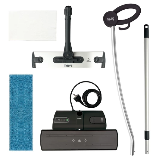 MOPPY 包括一个充电底座,用于对抹布进行蒸汽和消毒,以及一个轻巧灵活的阳极氧化铝无线拖把,可触及所有角落并绕过障碍物。热蒸汽抹布可以清洗和深层清洁所有类型的地板和垂直表面,无需使用清洁剂即可去除和消除99.9% 的细菌和病菌*。 MOPPY 是即时、实用和快速的,因为它结合了蒸汽的有效性和轻便灵活的拖把的简单性,消除了移动时烦人和笨重的水桶,并具有保持双手始终清洁和干爽的额外好处。